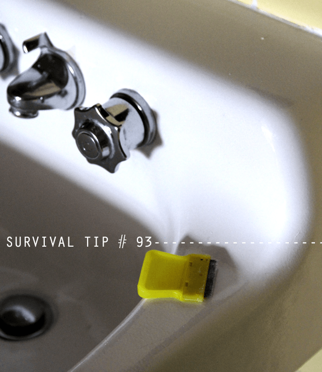 Beyond being useful for cutting through tape on box after box of books (more on packing to come later), this little sucker serves myriad obsessive cleaning purposes, too. Hooray! Trust me when I say that with the exception of the most beautifully maintained spaces, in most rental apartments, somewhere along the line, someone did a slapdash job of painting or caulking or something else that makes the difference between a place feeling clean and feeling scuzzy.