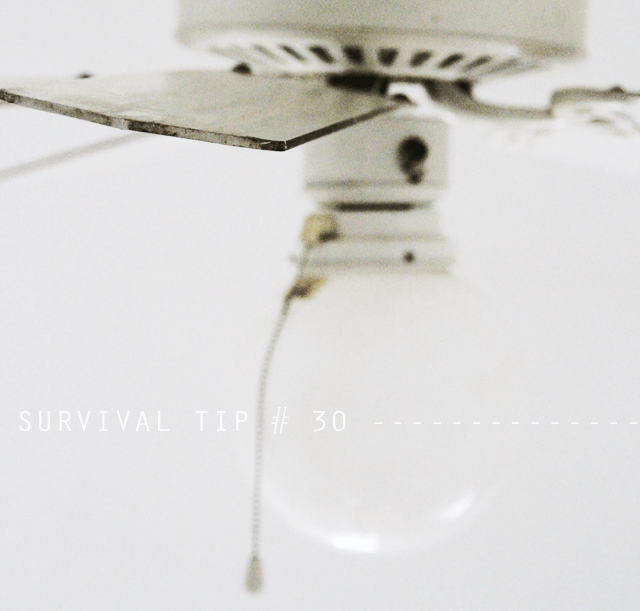 first, let’s revisit the initial disaster. lo these many months ago, our well-intentioned super replaced our nonfunctional, but otherwise innocuous, white ceiling fan with a real monster yanked directly from the 1980s and plunked into our tiny space. i stewed for a night and then sent a quick note to the landlord asking if, perchance, we might be able to make a trade for something less terribly ugly. well. last week, my prayers were answered when a brand new, sparkly clean white fan wended its way to our apartment and was generously installed by our super who managed to get only the finest sprinkling of plaster dust on every single surface in our apartment. we’re so totally stoked that we’re not even questioning the rationale behind installing a filthy ceiling fan onto a 12-foot ceiling before so much as giving it a quick wipe down. heh. needless to say we have some cleaning to do.