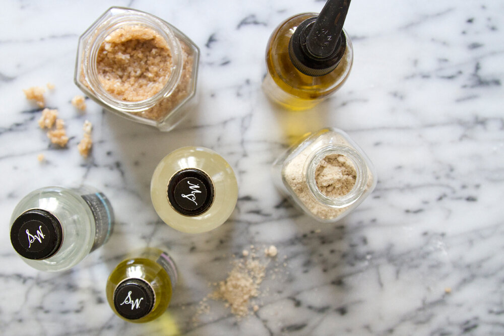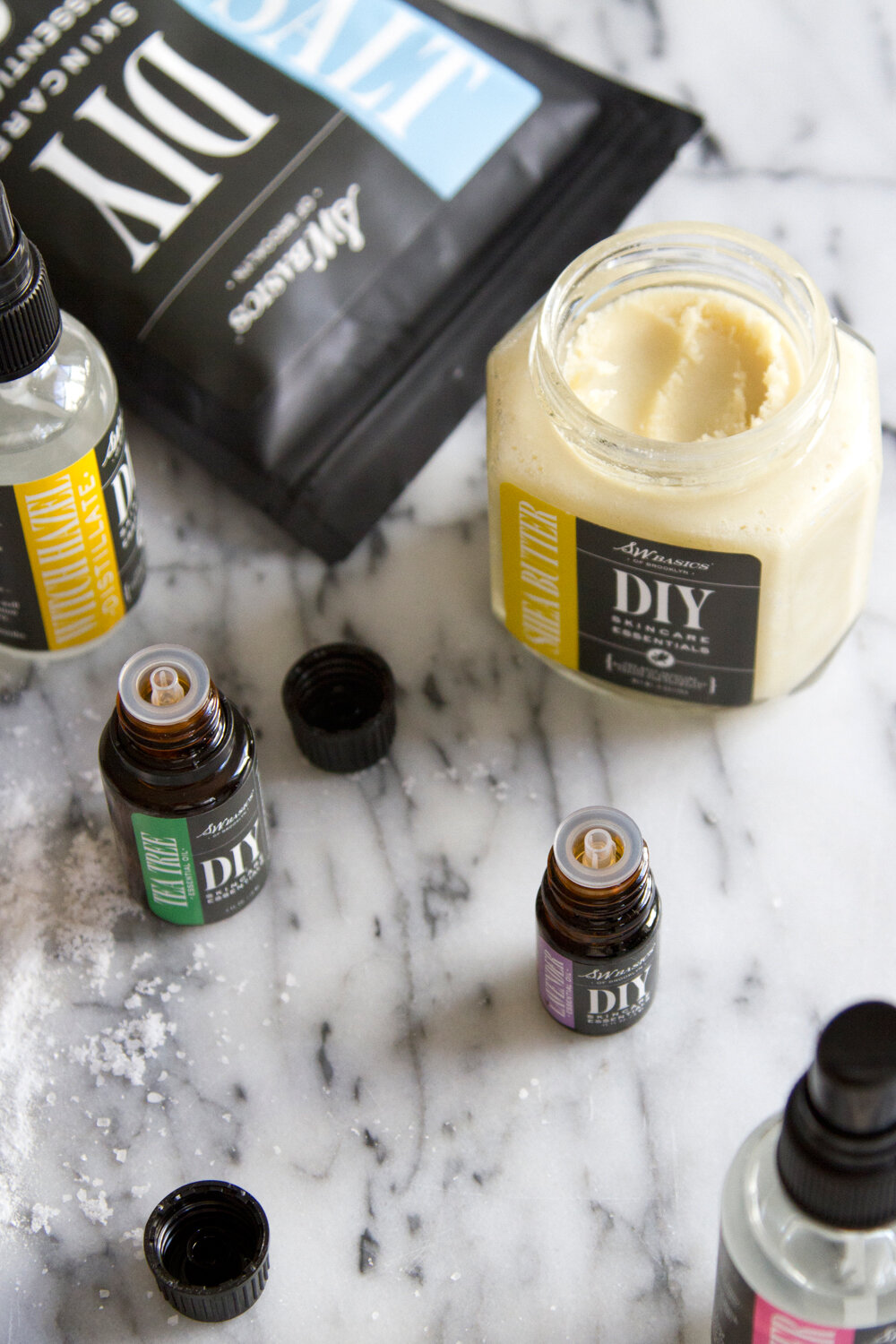 Now, with the launch of the S.W. Basics DIY Essentials line, they’ve taken simplicity one step further. The new line boasts nine single-ingredient products sourced with the goal of allowing the users to take even greater control over their skincare. The products—Lavender Hydrosol, Rosewater Spray, Witch Hazel Distillate, Tea Tree Essential Oil, Lavender Essential Oil, Sea Salt, Aloe Vera Powder, Shea Butter, and Jojoba Oil—can be combined together and with other ingredients that you likely have readily on hand at home, for a 100% personalized skincare regime.